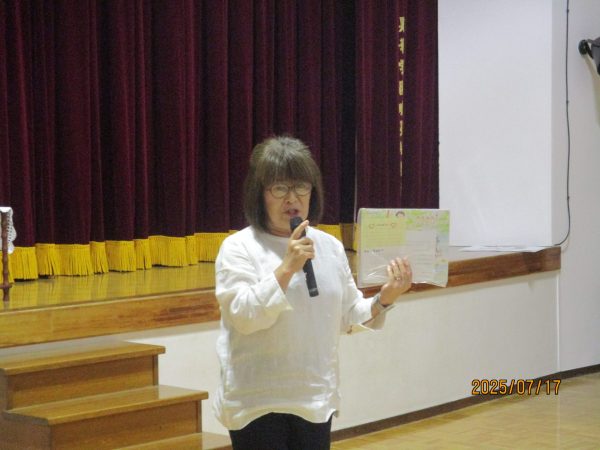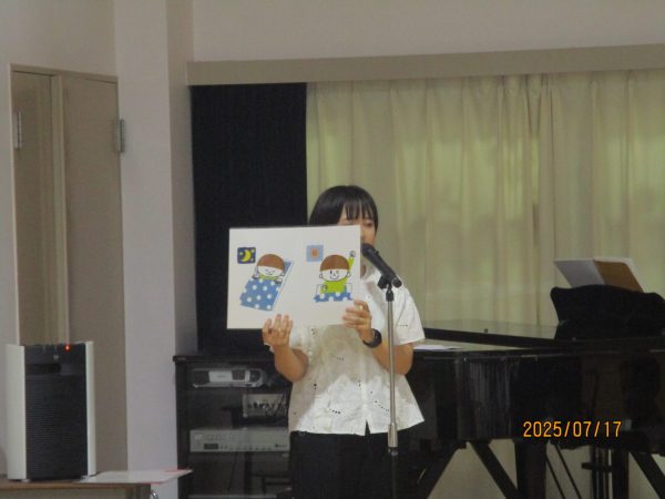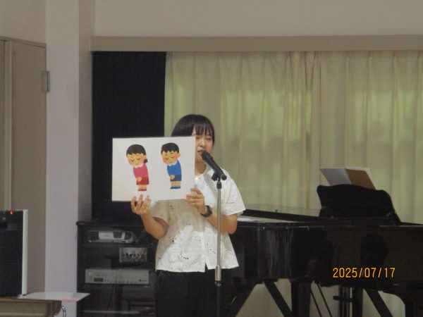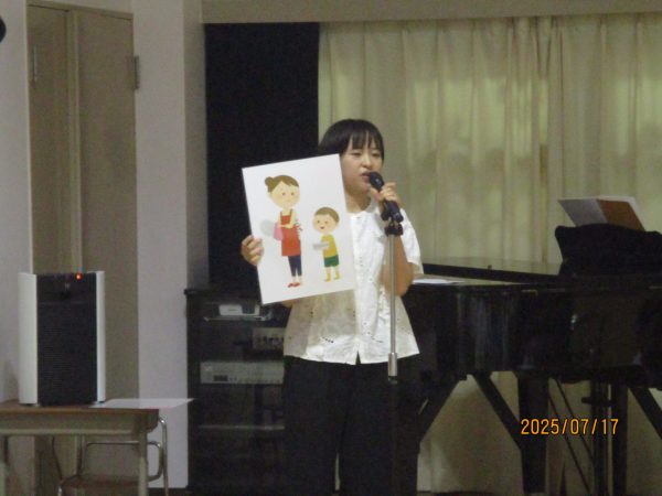 三つ目、お母さんに「平和を願う祈り」を読んでもらって、皆さんは目を閉じて、手を合わせて、静かに聞きましょう。