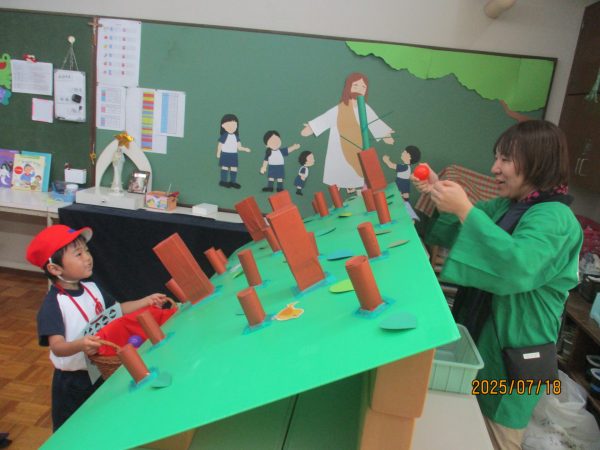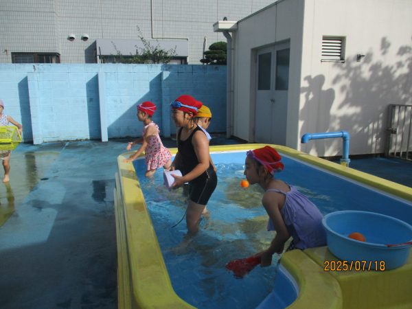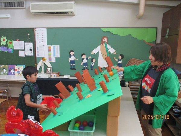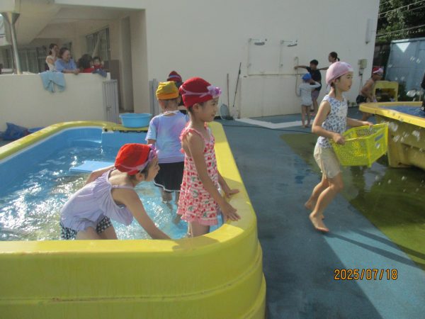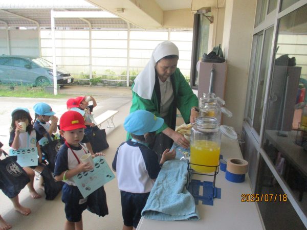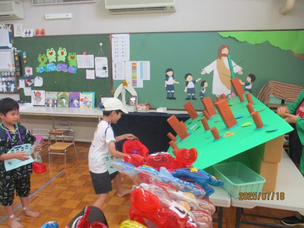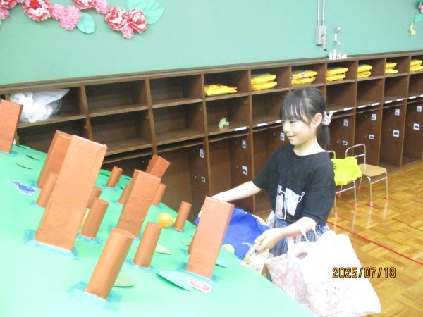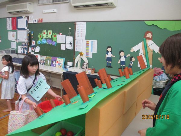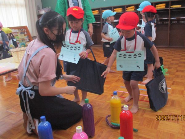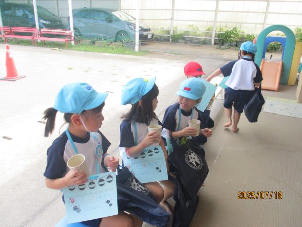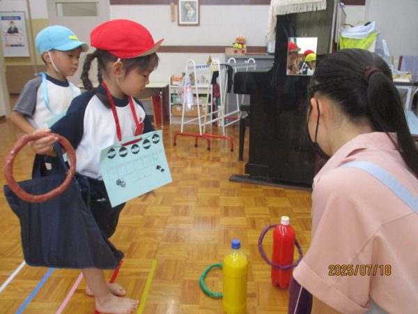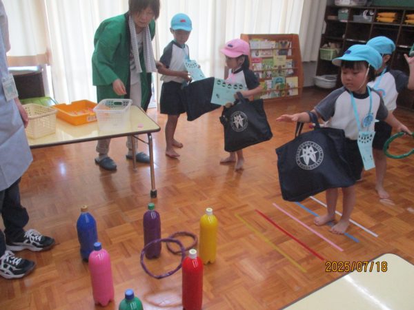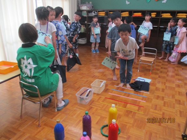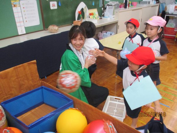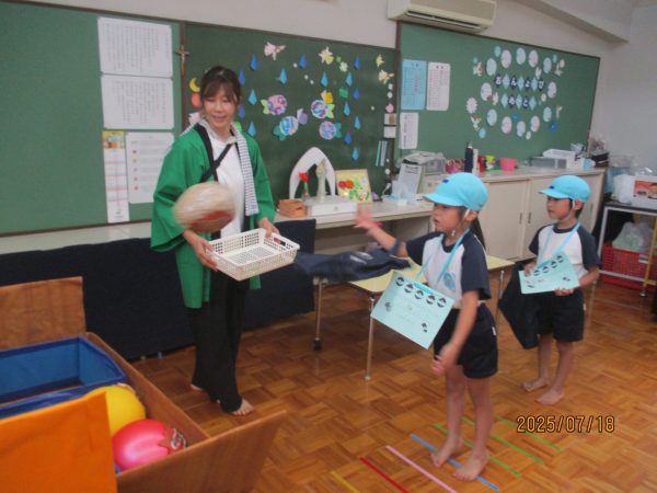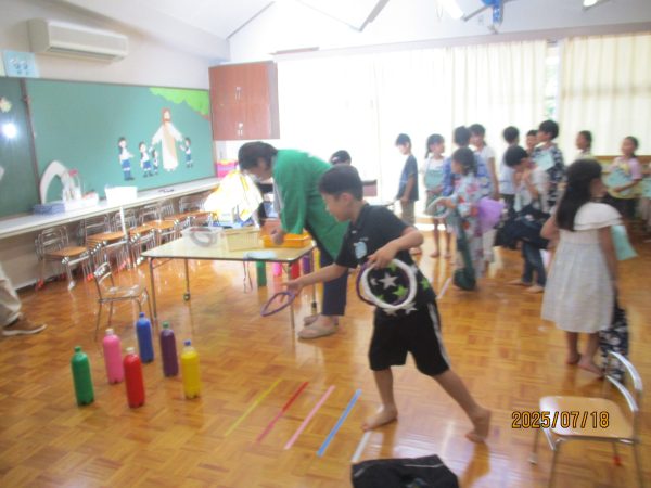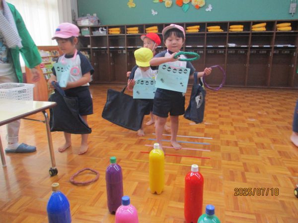 子ども達はくだものキャッチ、たこやき、わなげ、すくいもの、ドリングバーの各コーナーで、夏まつりを楽しみました。