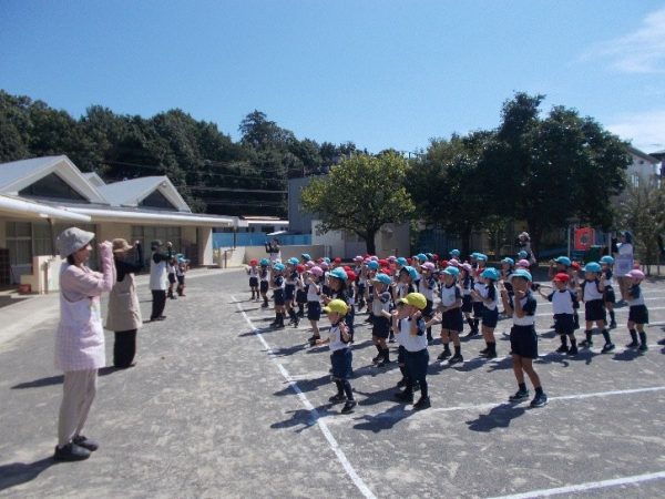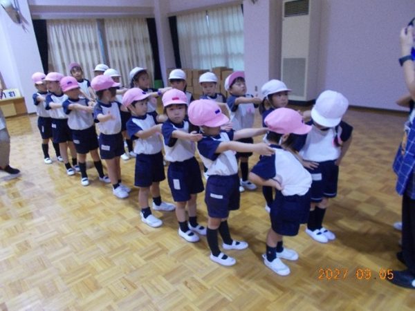 年中組は、間隔をあけて整列する練習!!