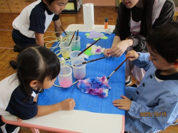 たんぽぽ組は、『ぶどう』をにじみ絵で表現しました。