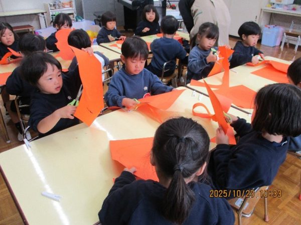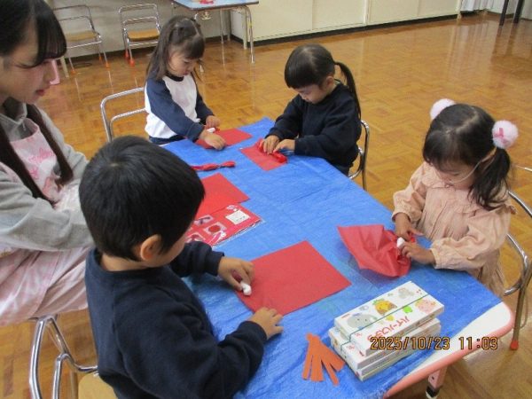 たんぽぽ組の子どもたちも、パーティーに向けて装飾づくりに懸命です。