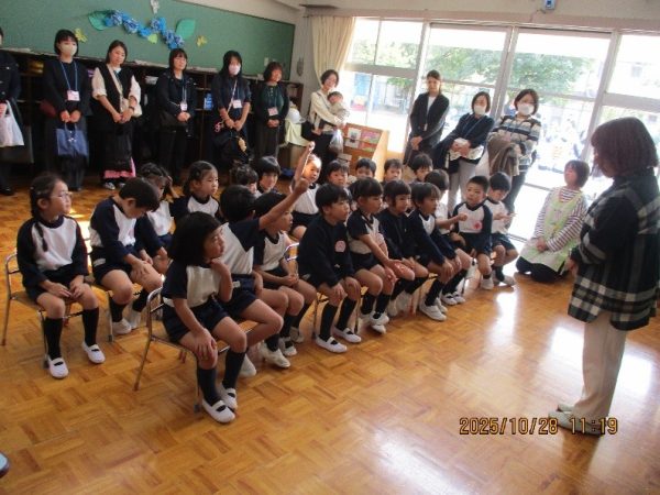 年中組は、『しあわせなろば』というクリスマスに向けた絵本を読みました。