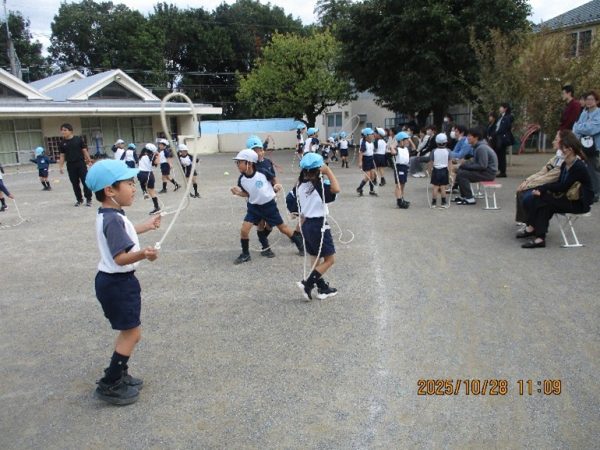 年長組は、運動会の障害物リレーでも、見ていただきましたが、今日は、落ち着いた状況で縄跳び・ボールつきを頑張りました。