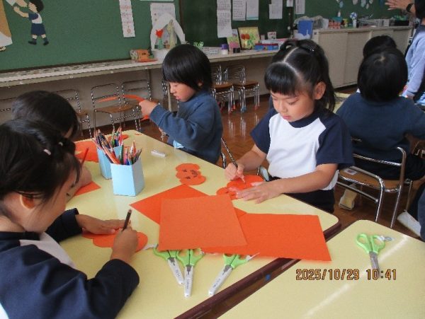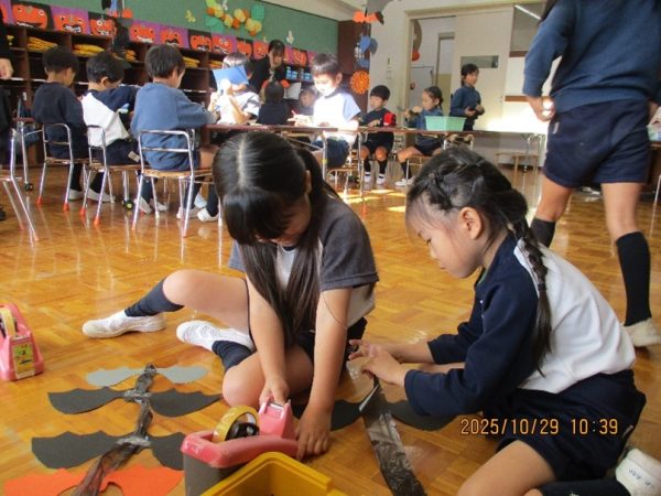 仮装用の衣装づくりの後は、各クラスの飾りつけです。