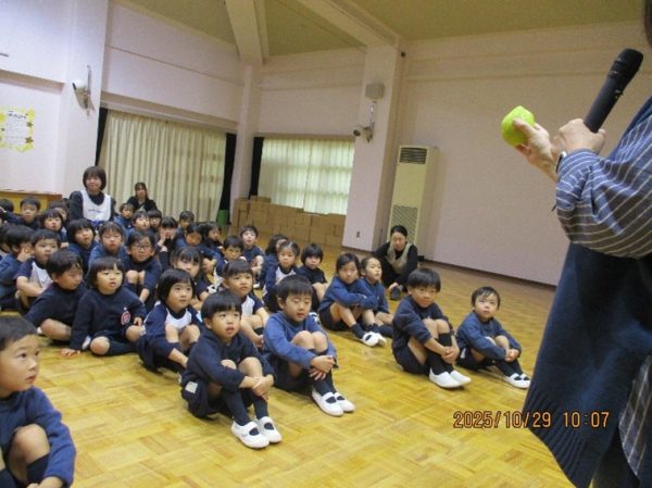 園庭には、たくさんの実のなる気がありますが、この季節は、柿・花梨が収穫できます。