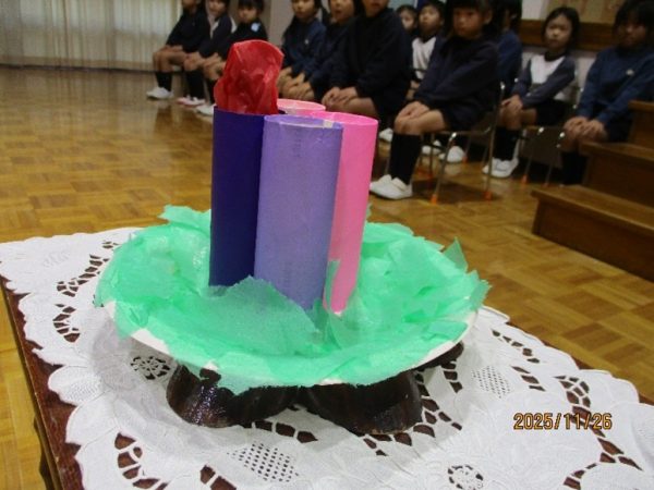 1週間ごとにろうそくの色が変わります。1週目は濃い紫色、2週目は薄紫 紫色は悔い改めを表します。3週目からは、喜びの週に入ります。