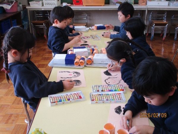 年中組は、作品展に向けて自分人形を制作中です。