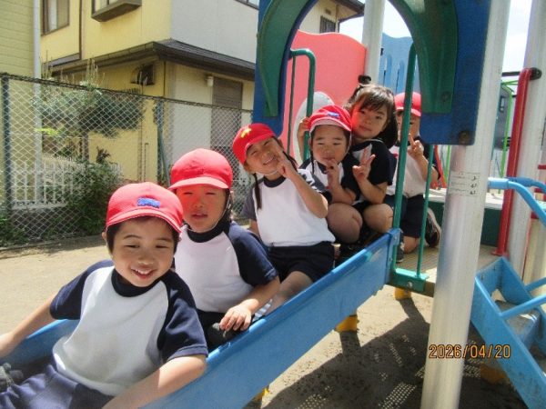 ものすごく、良いお天気になって年中組は外遊びをたっぷり楽しみました。